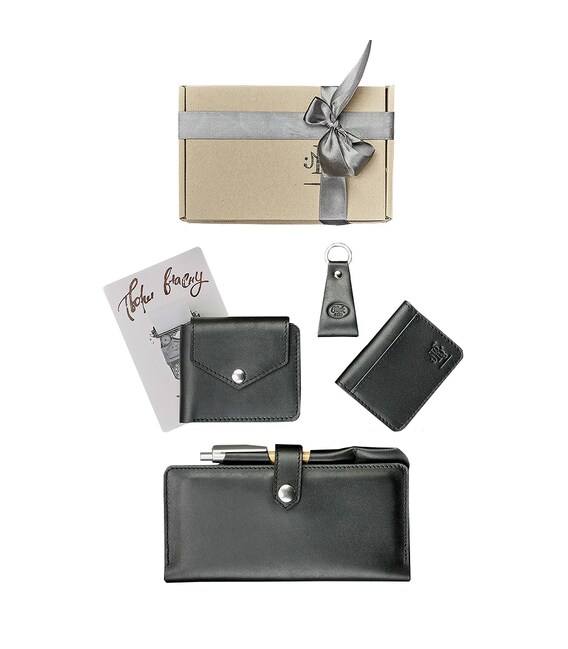 Как часто при выборе подарка мы мечемся из магазина в магазин, перерываем тонны информации на сайтах в поисках достойного подарка для друга, коллеги или члена семьи. Чтобы сделать вашу жизнь проще, а выбор подарков не утомительным, мастерская BlankNote создала подарочные наборы из самых необходимых предметов в повседневной жизни. Мы подобрали изделия, которые дополняют друг друга по функционалу, стилю, а также цветовой гамме. В набор аксессуаров "Дублин" входит:Тревел-кейс 4.0, Графит - Незаменимый аксессуар для путешествий, сохранит все важные документы, посадочные билеты и другие важные мелочи на время путешествия; Портмоне 4.2, Графит - стильное и компактное портмоне с небольшим отделением для монет; Кард-кейс 4.0, Графит - Удобный кард-кейс для хранения документов. Имеет 2 кармашка с окошком и 1 обычный; Брелок. Верный спутник для ваших ключей; Дизайнерская открытка - для важных слов. Подарочный набор упакован в крафтовую коробку и заботливо перевязан атласной лентой. Все, что вам предстоит сделать, это заказать и презентовать восхитительный подарок - набор аксессуаров "Дублин" . Меньше времени на раздумья, что подарить, больше на приятные приготовления!Габариты: тревел-кейс (13x22 см), портмоне (11х9 см), кард-кейс (10х7,5 см), брелок (4х4 см), открытка (10х15 см)Фурнитура и комплектация может быть изменена производителем