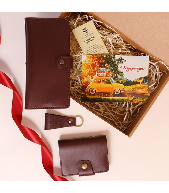 | Размер | портмоне (19х9 см), кард-кейс (10х8 см), брелок (4х4 см), листівка (10х15 см) |