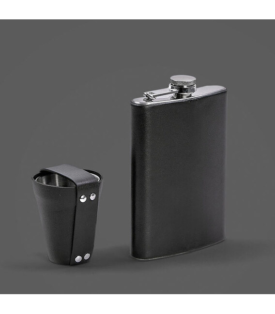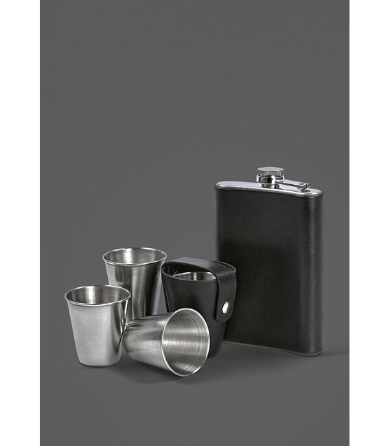 Набор с флягой и рюмками в кожаном чехле черный