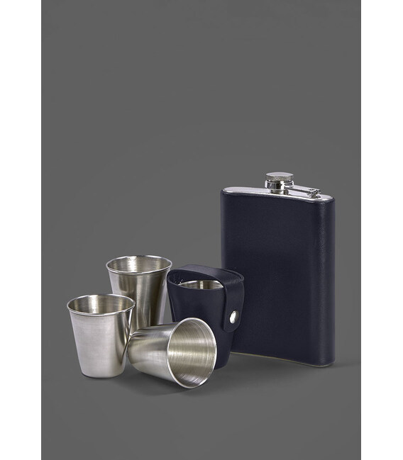 Набор с флягой и рюмками в кожаном чехле темно-синий