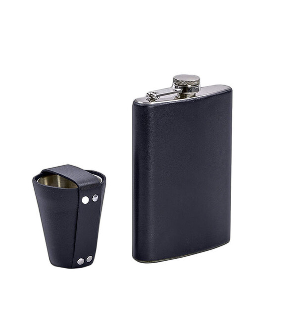 Набор с флягой и рюмками в кожаном чехле темно-синийИщете подарок для человека, любящего активный отдых? Обратите внимание на наш набор с флягой и рюмками. Такой аксессуар будет уместен во время путешествия, туристического похода, рыбака, охоты и т.д. Его удобно брать с собой на природу, хранить в машине. Любимый согревающий алкогольный напиток всегда будет под рукой. Все элементы изготовлены из пищевой нержавеющей стали, которая не испортит вкус содержимого.Если получатель не принимает алкоголь, фляга и рюмки могут использоваться в качестве сувенира. Набор состоит из фляги обтянутой натуральной кожей и четырех рюмок в кожаном чехле. Компактная фляжка может содержать минимальное количество алкоголя для компании близких друзей. Натуральная кожа гармонично дополняет и подчеркивает солидный внешний вид фляги.Как заказать персонализированный подарочный набор?Мы можем предложить нанесение на поверхность кожи логотипа фирмы, изображений и надписи посредством гравировки или тиснения.Обратитесь к нашему менеджеру, если желаете заказать изделие с персонализацией.Подарочный набор фляга и рюмки – вариант символического подарка, который подойдет мужчинам с активным хобби и изысканным вкусом. Такой подарок будет напоминать о человеке и радовать функциональностью в повседневном использовании.Фурнитура и комплектация может быть изменена производителем.
