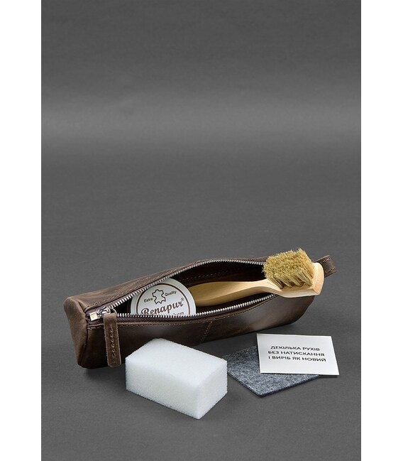 Набор для ухода за кожаными изделиями в кожаном чехле темно-коричневый