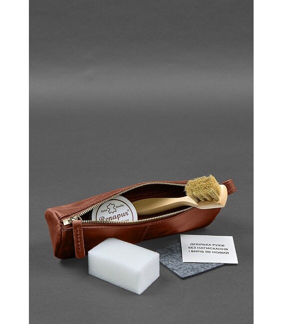 Набор для ухода за кожаными изделиями в кожаном чехле светло-коричневый