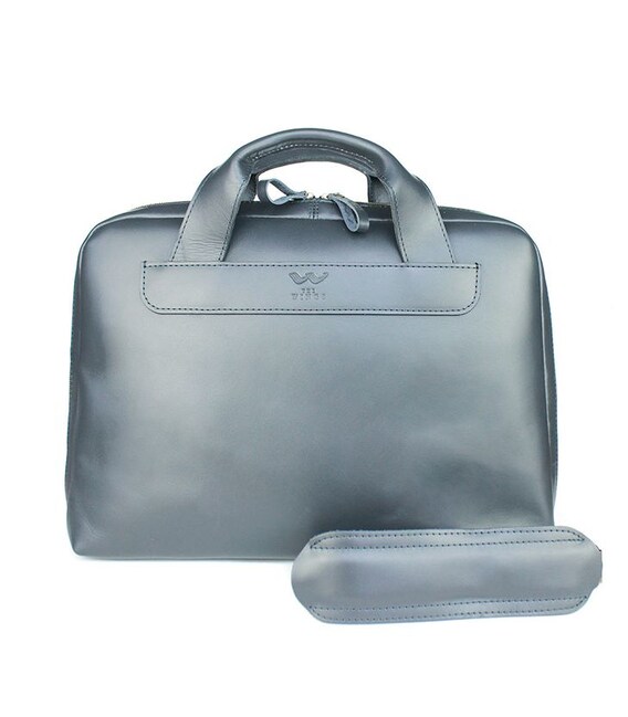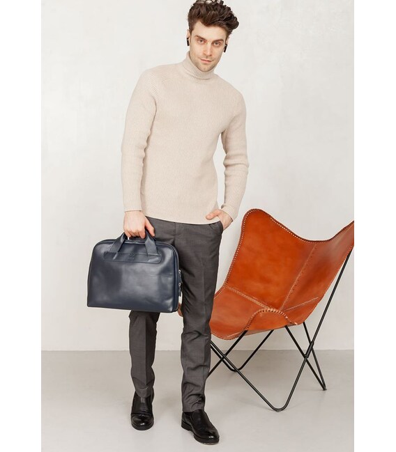 Описание Кожаная деловая сумка Attache Briefcase синий