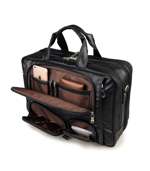 Описание Багатофункціональний портфель на три відділення з натуральної шкіри John McDee JD7289A