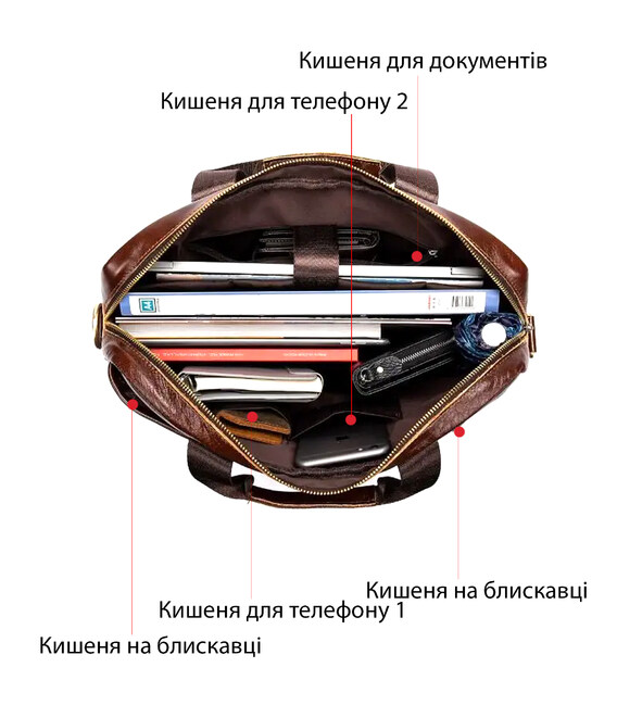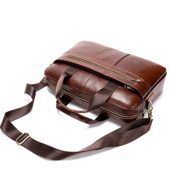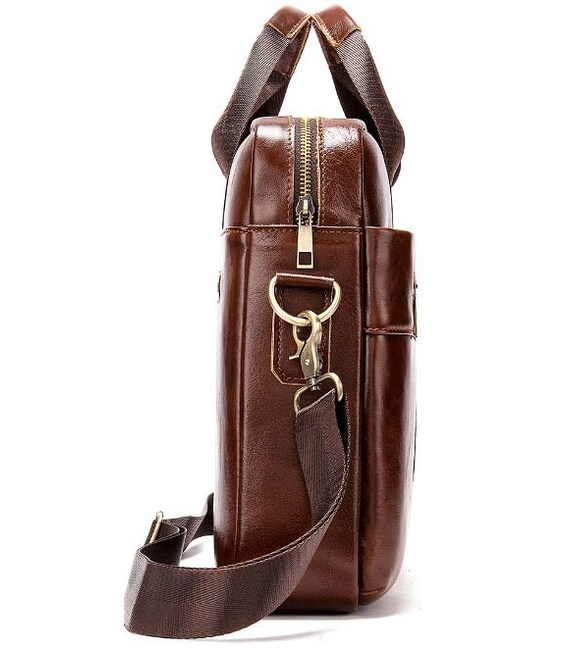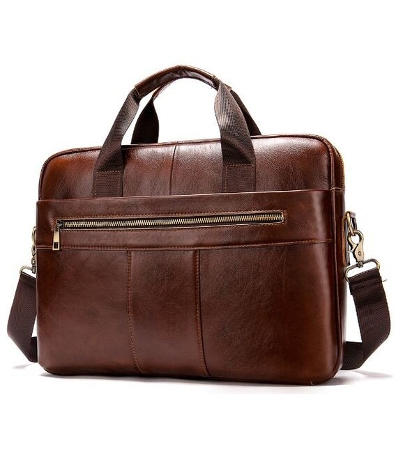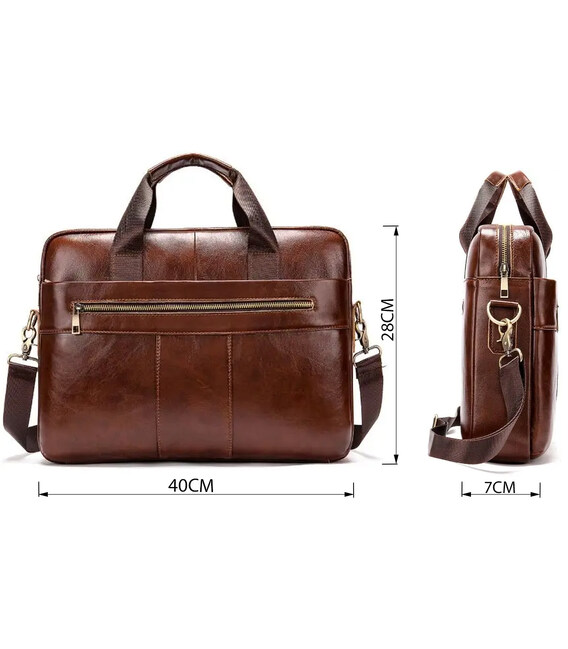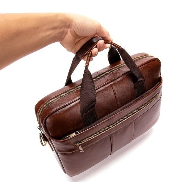 Деловая мужская сумка из натуральной кожи в классическом дизайне. Аксессуар можно носить как в руках с помощью ручек так и на плече есть съемный текстильный ремешок. Модель дополнена металлической фурнитурой золотистого цвета. По краям аксессуар прошит рыжей нитью. Вы должны понимать, что немного переплатив за кожану сумку вы выиграете в том, что она прослужит вам намного дольше чем текстильные или из заменителя. Аксессуар удобно держать в руке. Сумка не тяжелая и имеет огромный функционал. В ней вам будет удобно носить документы или планшет или книгу. В сумку легко поместится ноутбук и она будет вам прекрасным помощником на деловых встречах или собраниях. С такой сумкой будет удобно ездить в командировки или мелкие путешествия. Она подчеркнет ваш статус и чувство стиля. Сумка будет желанным подарком для любого мужчины. Аксессуар упакован в тканевой мешок, что защищает его от пыли и влаги во время того как вы его не используете.