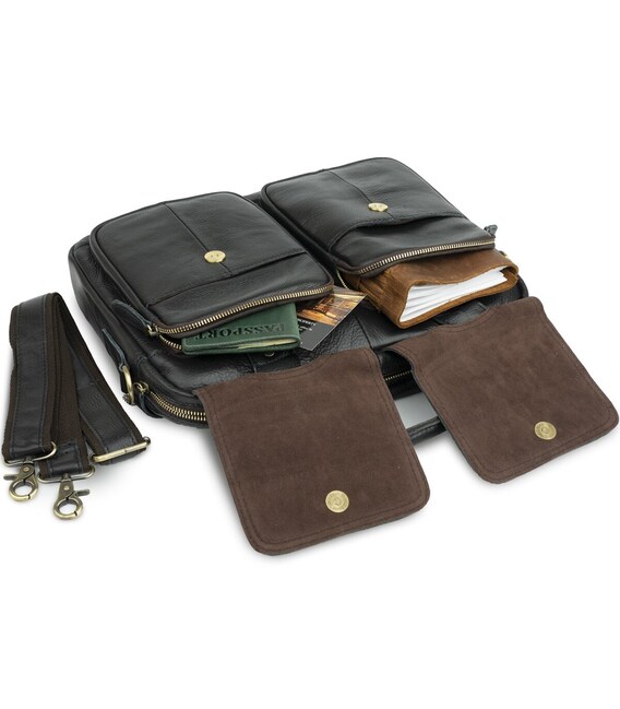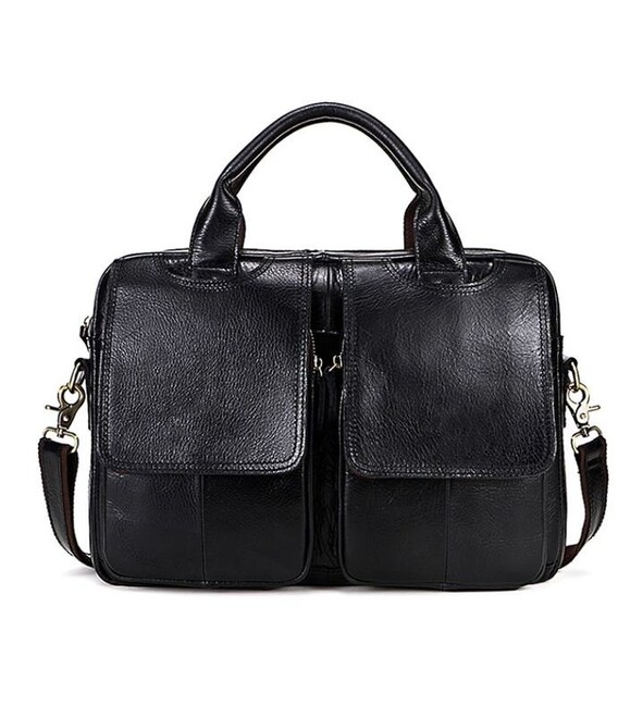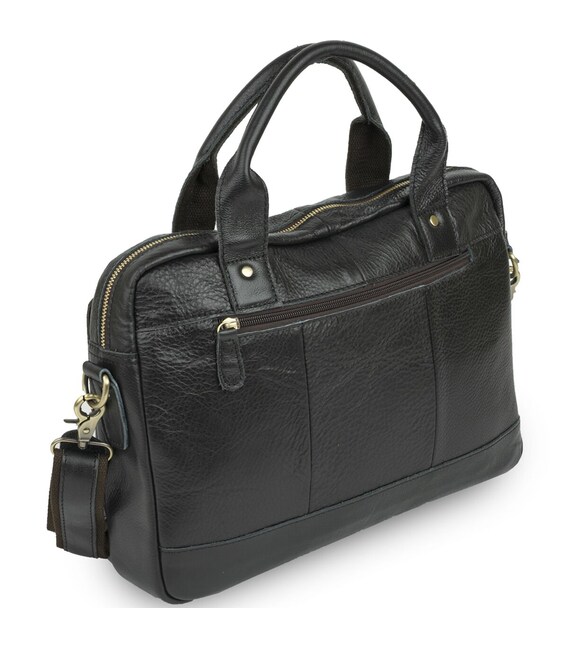 Стильная сумка для ноутбука в черном цвете. Аксессуар выполнен из натуральной телячьей кожи высокого качества. Сумка дополнена разнообразными карманами для самого необходимого. Аксессуар красиво дополнит ваш образ и стиль. Переплачивая за кожаную сумку вы не пожалеете так как она прослужит вам очень долго. Кожа очень неприхотлива в уходе и при этом долго носится. Модель придаст завершенности вашему образу и подойдет под любой стиль. Будет прекрасным подарком для близкого человека.
