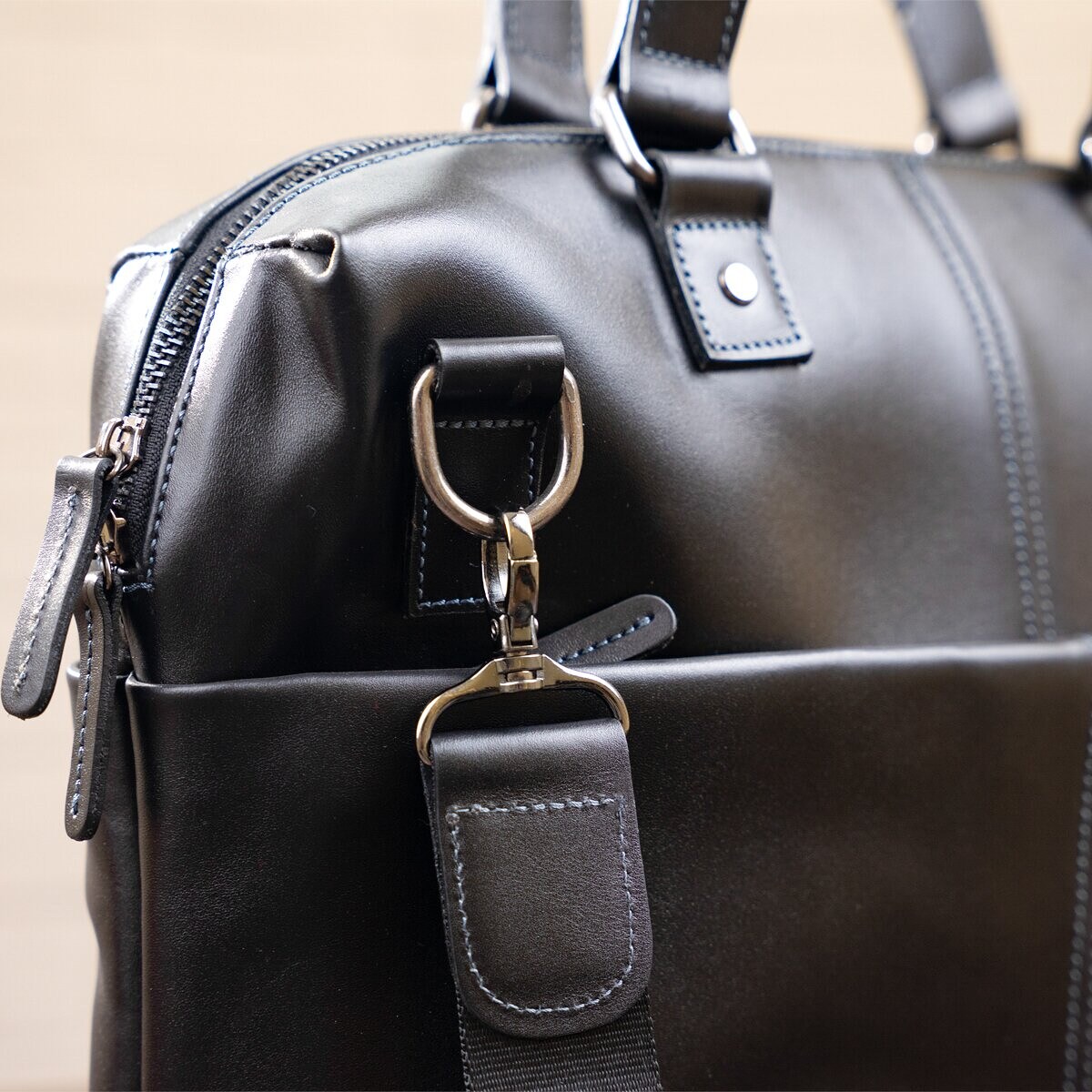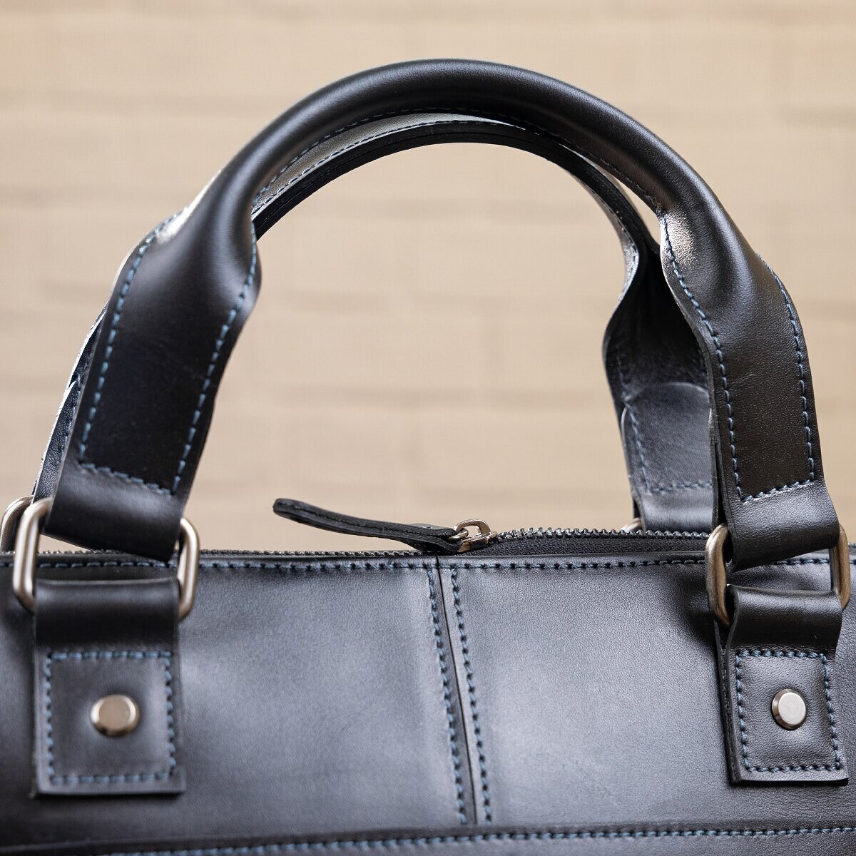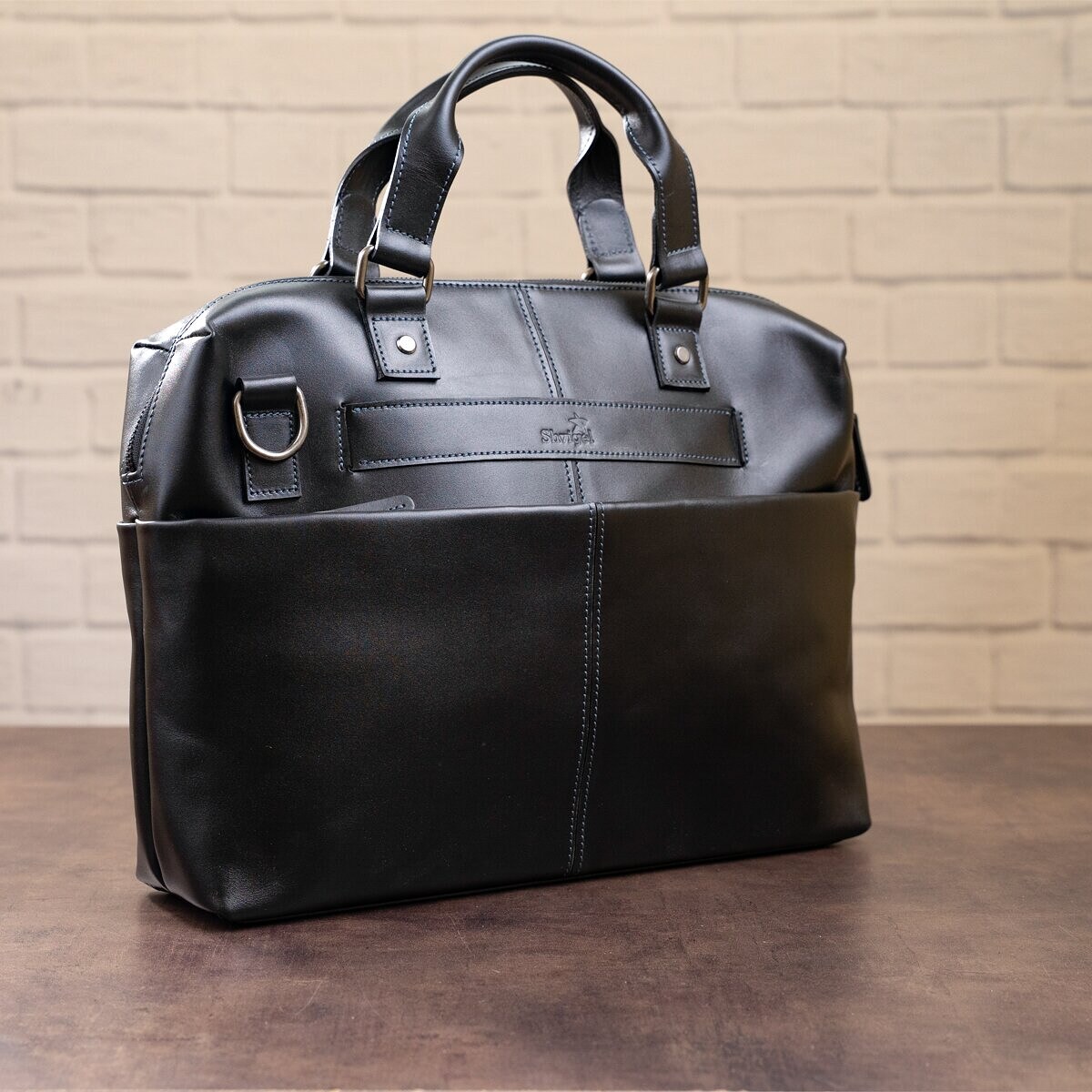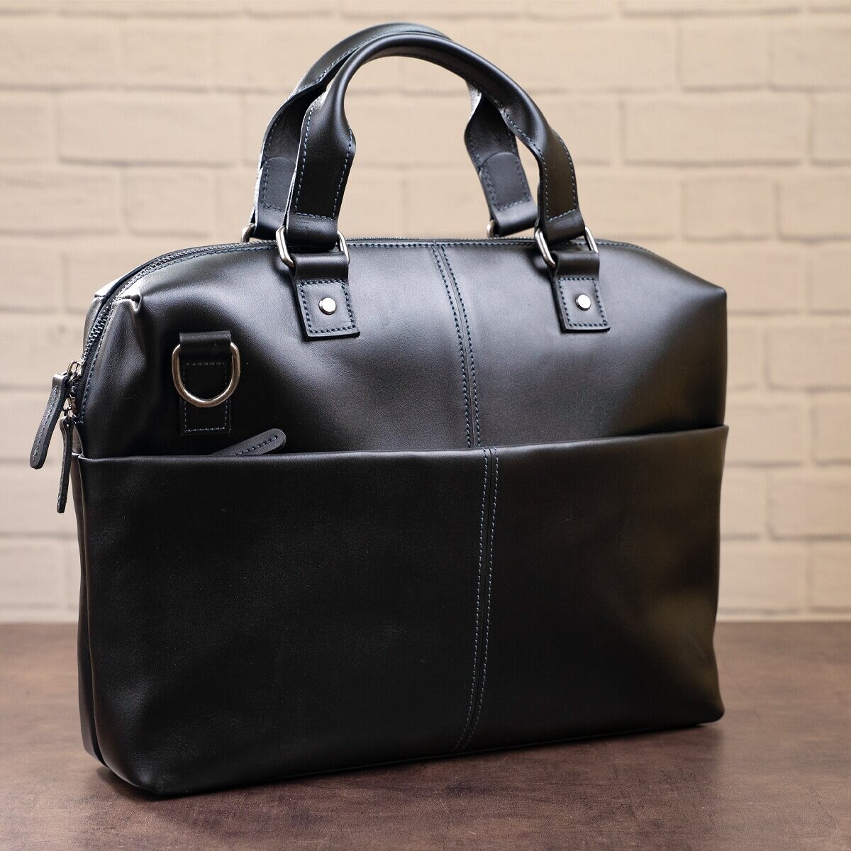Вместительная сумка из натуральной гладкой кожи высшего качества. Носить сумку можно через плечо на съёмном, регулируемом ремне из прочного текстиля и кожи или в руке за две кожаные ручки. Аксессуар выглядит презентабельно, дорого и качественно. Если Вам нужна износостойкая, надежная и практичная вещь то советуем присмотреться к данной модели. Аксессуар упакован в тканевой чехол.