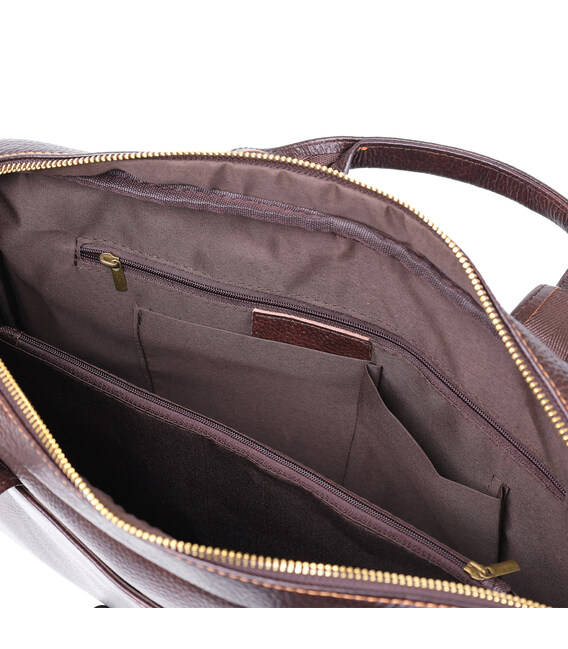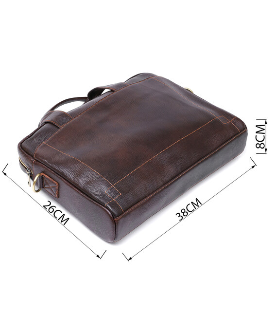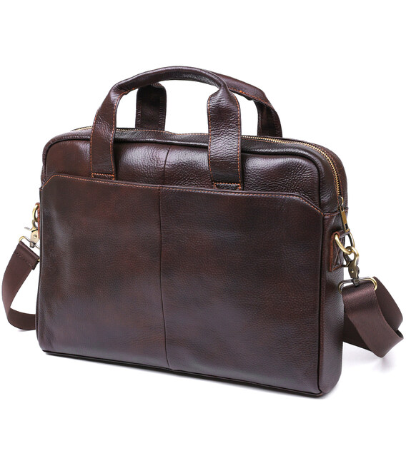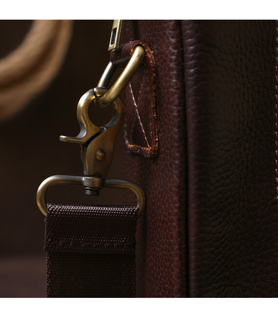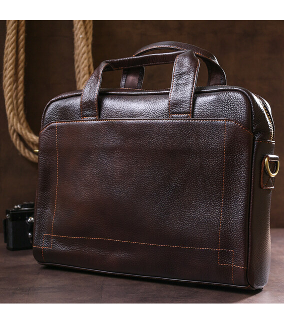Замечательная мужская сумка для деловых людей из натуральной кожи высокого класса и повышенной стойкостью к износу. Выполнена данная модель в сочном коричневом цвете, что смотрится очень презентабельно и богато. Внутри есть просторное отделение, на внешней стороне присутствуют карманы на кнопках на всю длину. Фактура изделия – зернистая и приятная на ощупь.