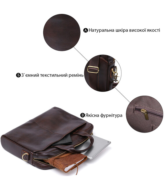 Описание Мужская кожаная сумка-портфель Vintage 20679 Коричневый