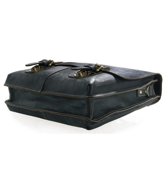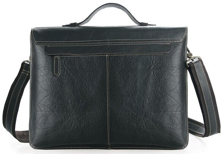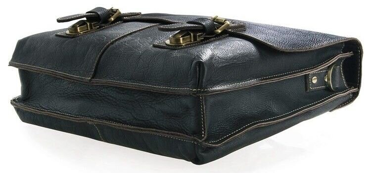 Великолепный мужской портфель из натуральной высококачественной винтажной кожи. Аксессуар надежно прошит прочной нитью белого цвета, которая придает изюминку данному изделию. Цвет фурнитуры: латунь. На задней внешней стороне расположено отделение на молнии. Портфель закрывается клапаном на двух защелках. Подкладка выполнена из прочного текстильного материала черного цвета.