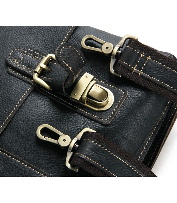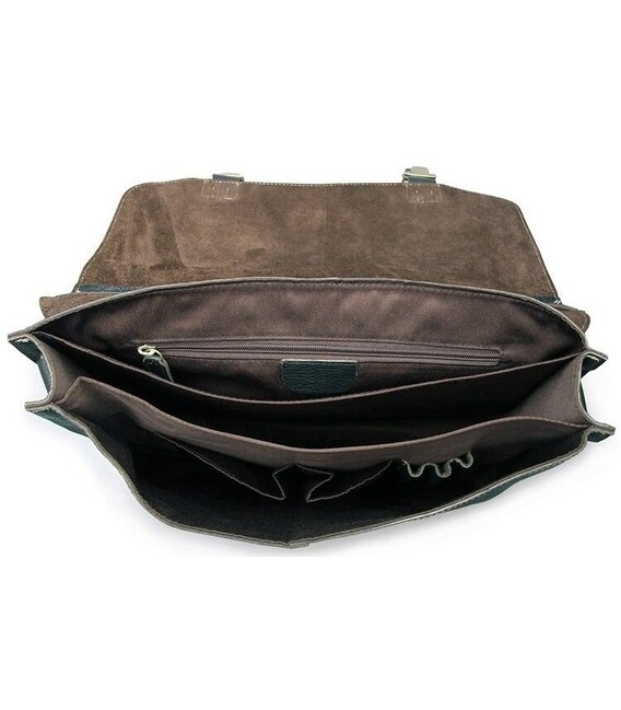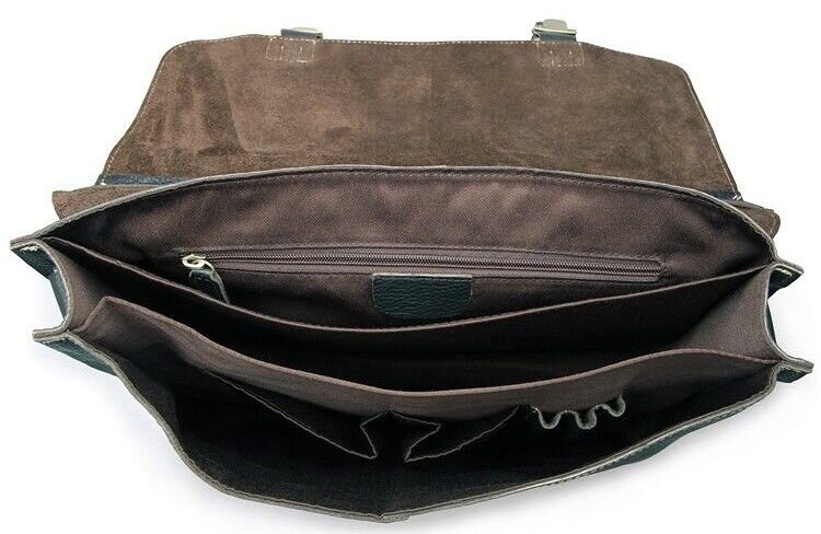 Такой портфель можно переносить в руке при помощи удобной кожаной ручки, а также через плечо (в комплекте съемный, регулируемый плечевой ремень).