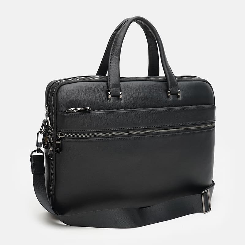 Презентабельная стильная сумка для деловых мужчин. выполнена из качественной натуральной кожи. Имеет 2 отделения на молниях. Внутри 1 карман и отдел под ноутбук, планшет. Снаружи 3 кармана на молнии. Подкладка текстиль. Цвет фурнитуры серебро. Фурнитура металл. Съемный плечевой ремень регулируется по длине.
