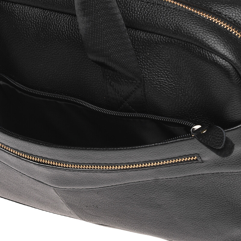 Сумка закрывается на молнию. Имеет отделение под ноутбук и 3 кармана под телефон и другие мелочи. В эту сумку поместится также планшет, кошелек, документы и другие нужные вещи. С лицевой стороны-1 накладной карман на молнии, с тыльной стороны-1 горизонтальный карман на молнии. Подкладка- текстиль. Цвет фурнитуры- золото. В комплекте съемный плечевой ремень.