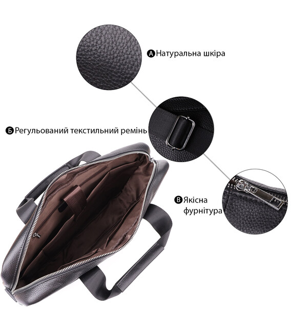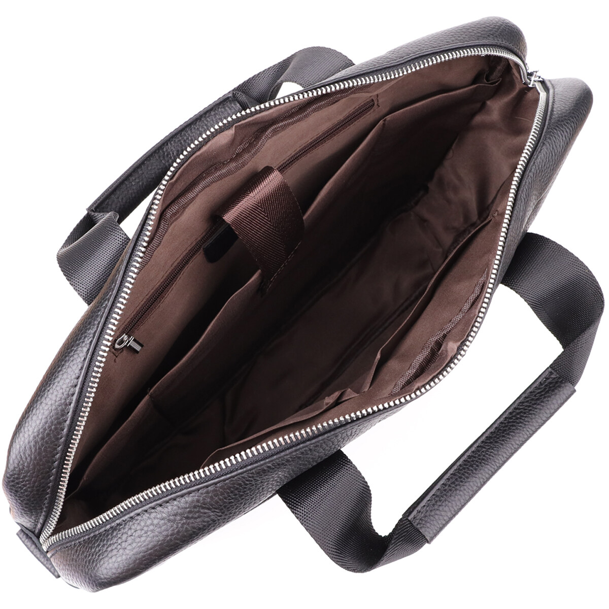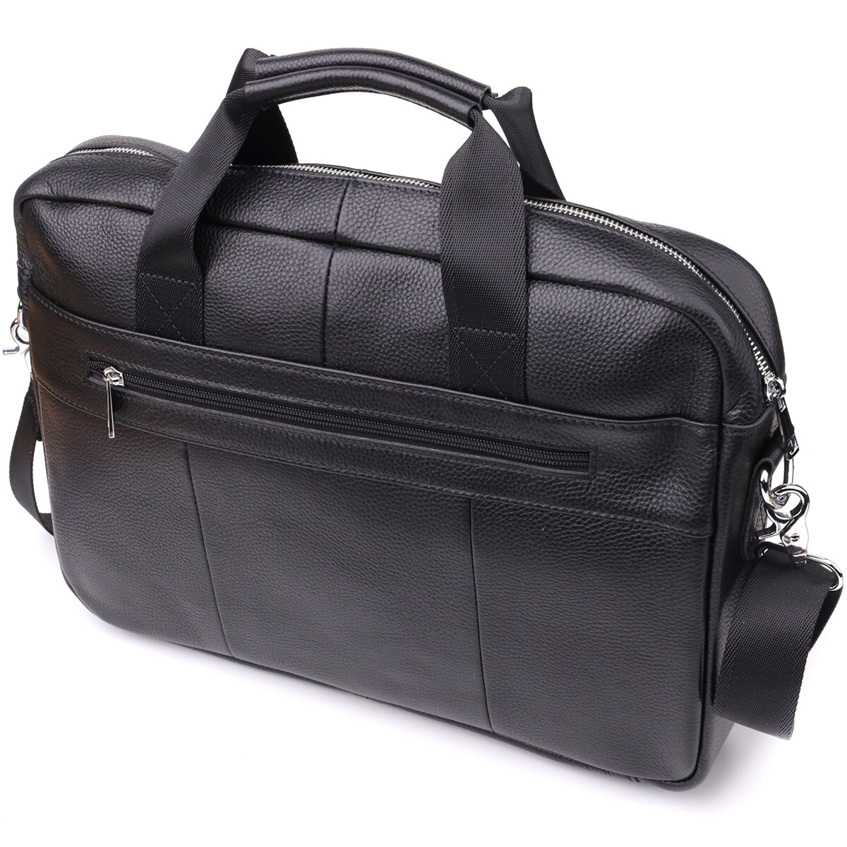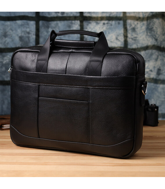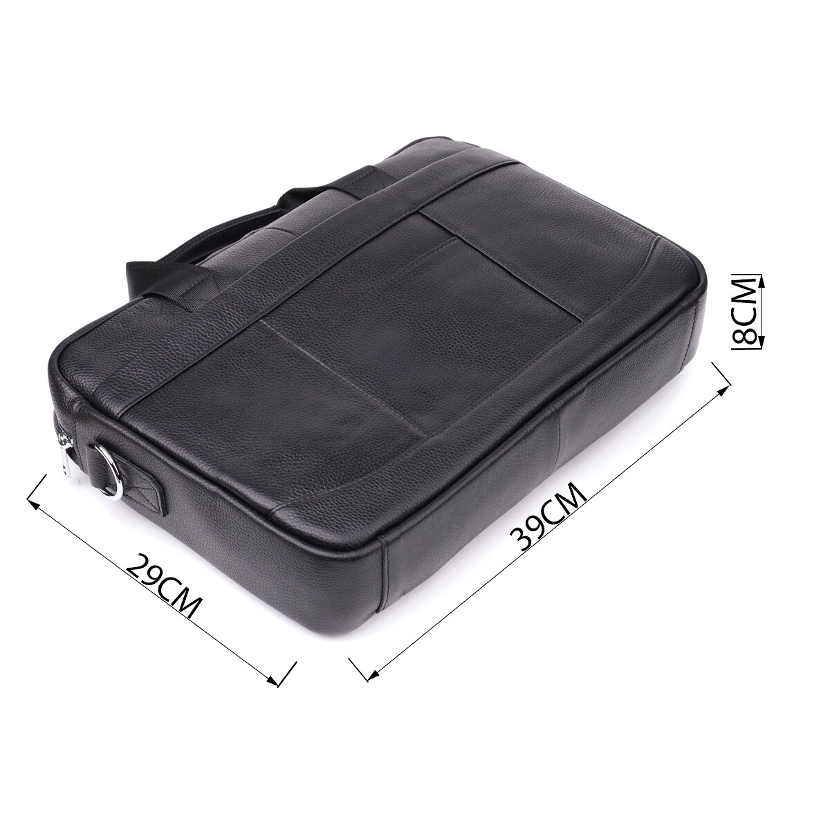 Стильный и функциональный кожаный портфель черного цвета, выполненный из натуральной кожи с прочным каркасом, идеально подойдет для деловых людей, ценящих комфорт и порядок. Сумка надежно сохраняет форму и обеспечивает защиту содержимого, включая ноутбук до 15 дюймов и документы формата А4.