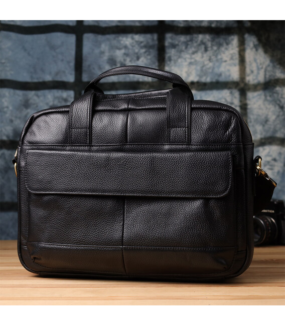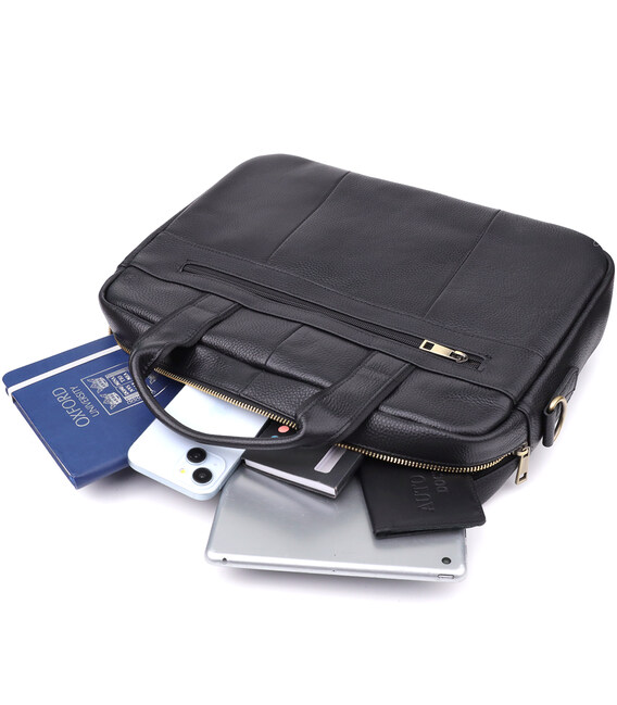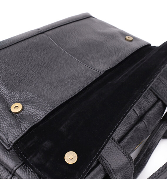 Чёрный цвет делает этот портфель универсальным выбором для любого образа — от строгого делового до повседневного. Это надежный и стильный помощник для работы, поездок и встреч.
