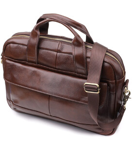 Этот портфель в тёплом коричневом оттенке и из зернистой кожи станет достойным дополнением к деловому образу и отличным спутником в повседневных поездках.