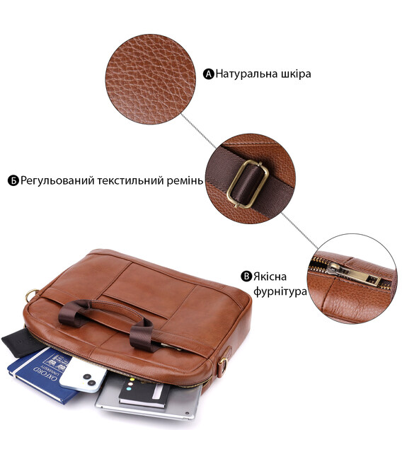 Элегантная кожаная сумка-портфель в классическом исполнении разработана специально для деловых людей, ценящих порядок и функциональность. Выполненная из натуральной кожи с устойчивым каркасом, она отлично держит форму и обеспечивает защиту содержимого. Идеально подходит для ноутбука до 15 дюймов и документов формата А4.