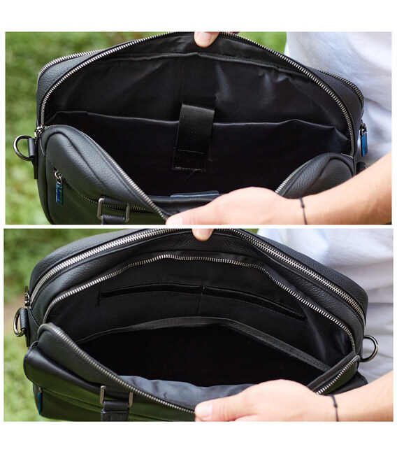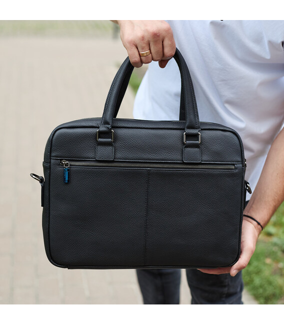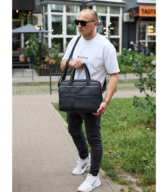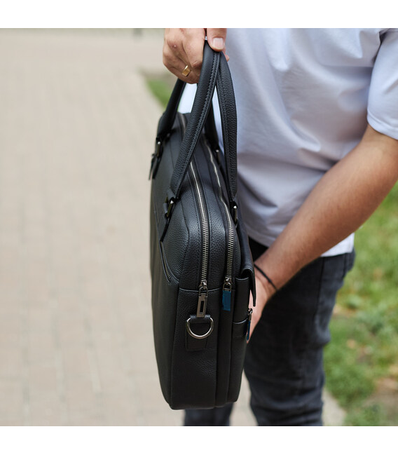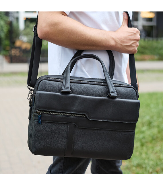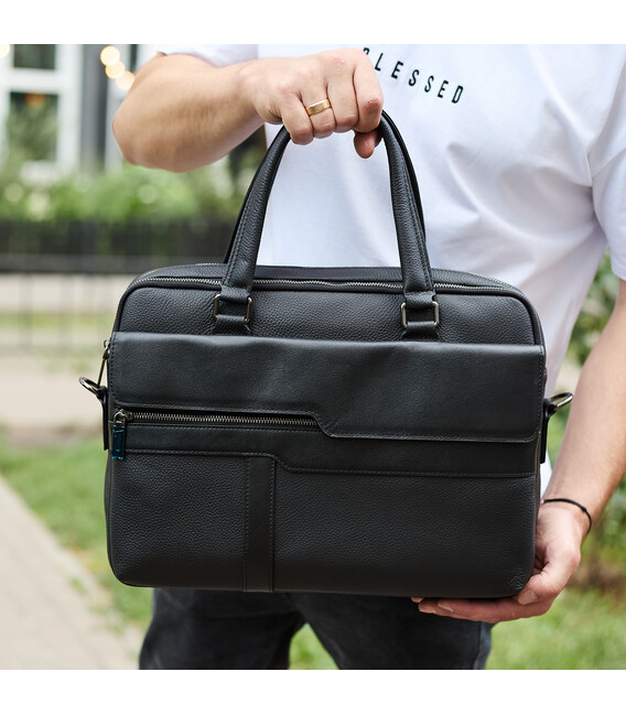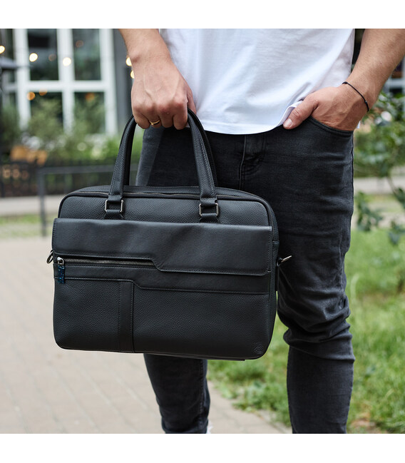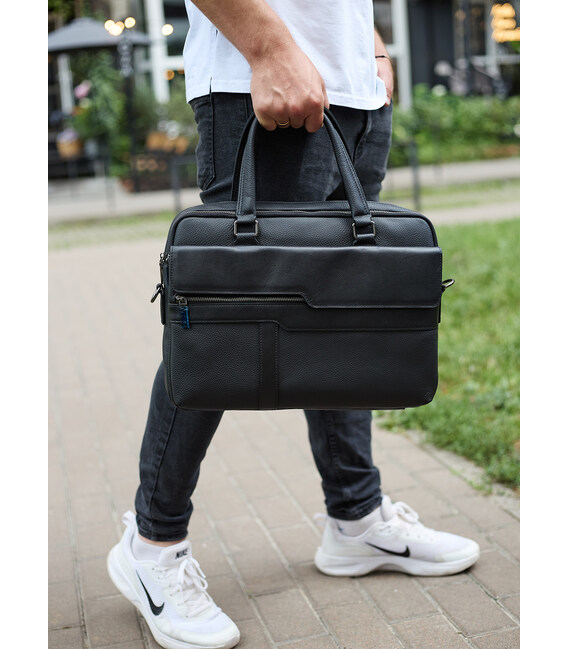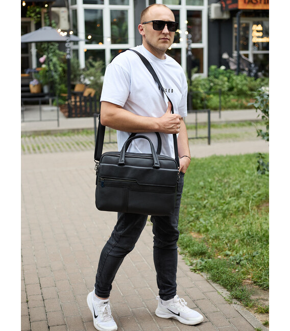 Описание Мужская деловая сумка из кожи 39х29х10, классический портфель для ноутбука и офиса, черный