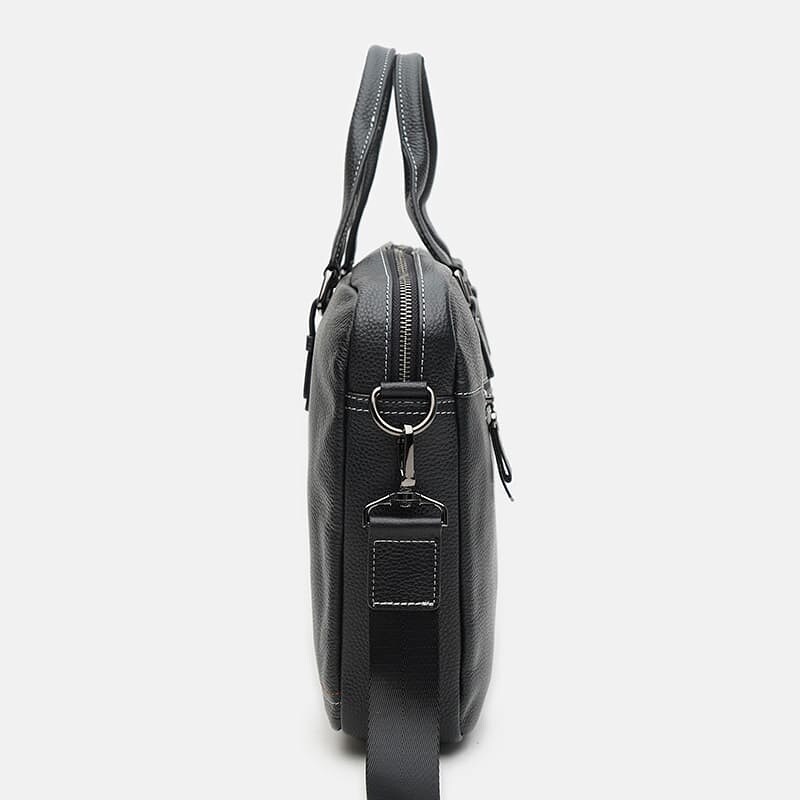 Деловая стильная сумка для мужчин выполнена из натуральной кожи. Имеет 1 отделение на молнии, отдел под ноутбук или планшет, Внутри -3 кармана для телефона и других аксессуаров. Снаружи 2 кармана на молнии. Подкладка текстиль. Съемный плечевой ремень регулируется по длине.