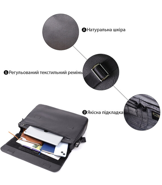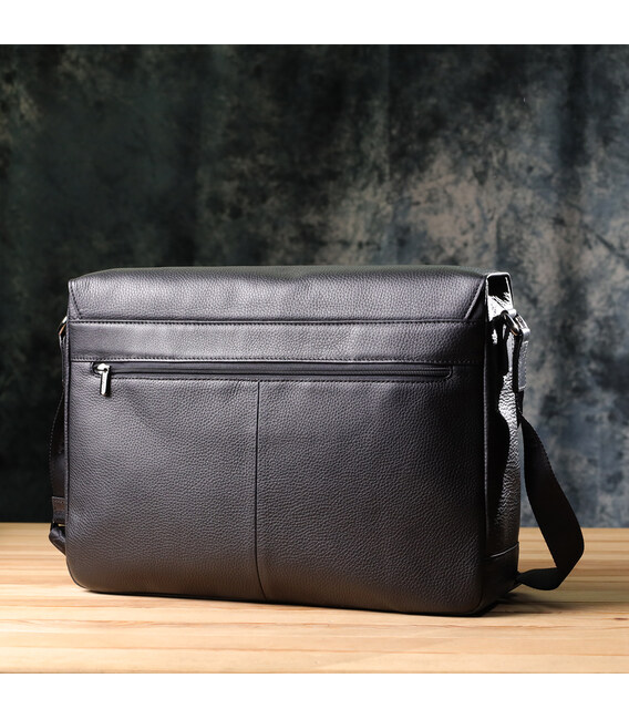 – выполнен из натуральной зернистой кожи черного цвета;
