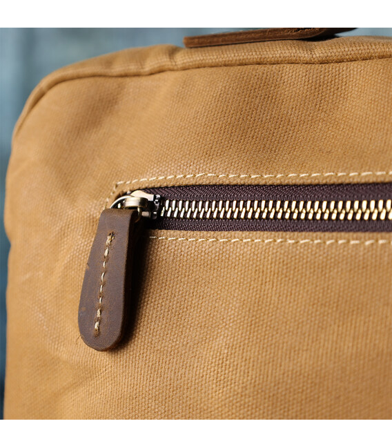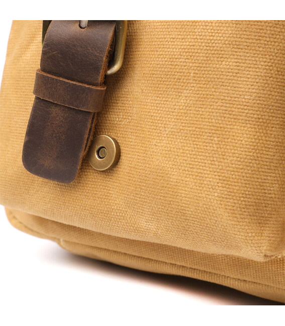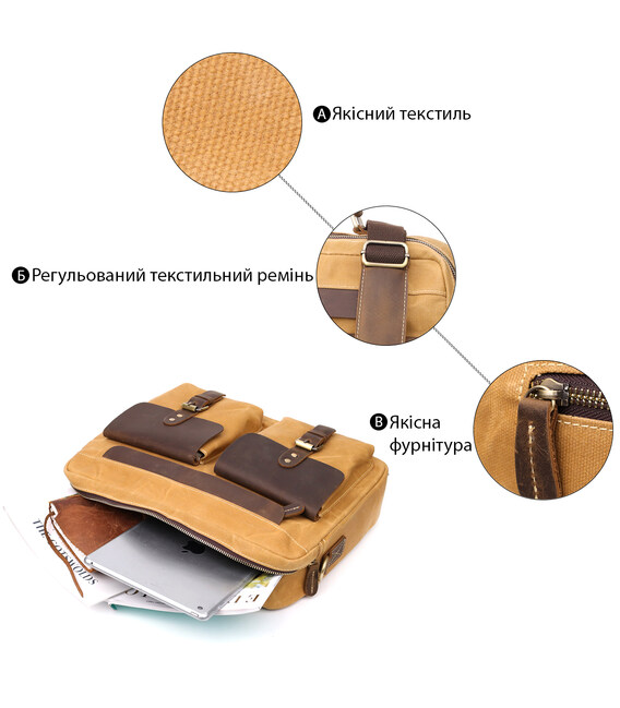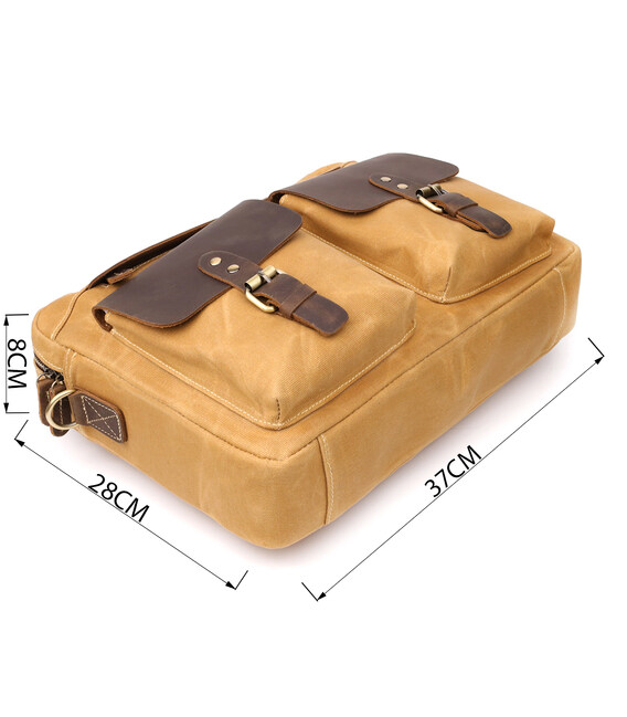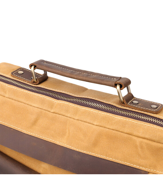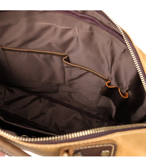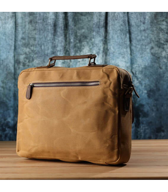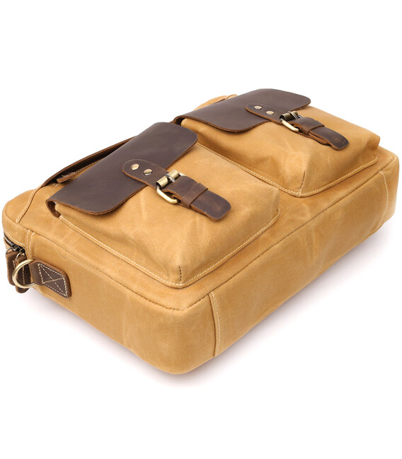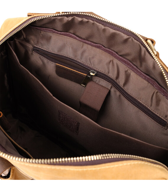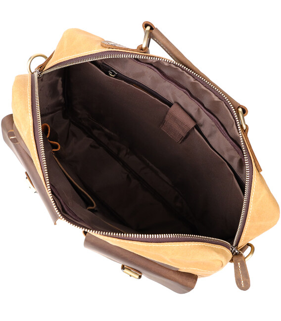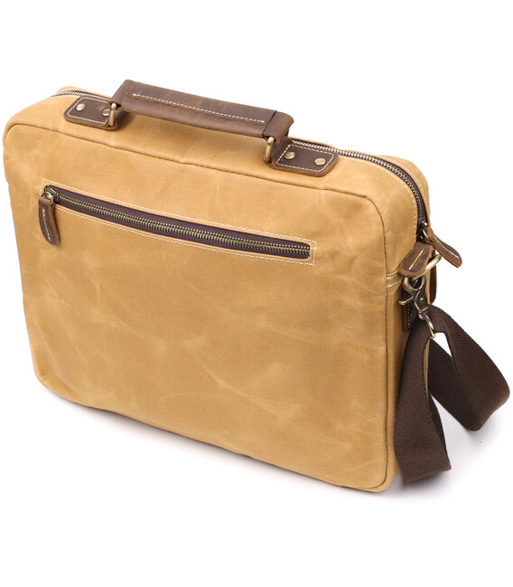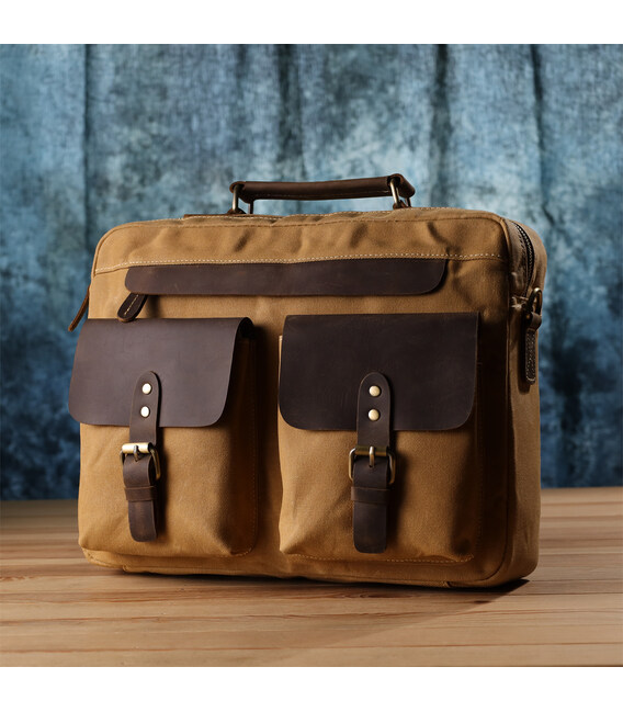 Описание Стильный портфель из качественного текстиля из кожаными вставками Vintage 20874_1 Светло-коричневый