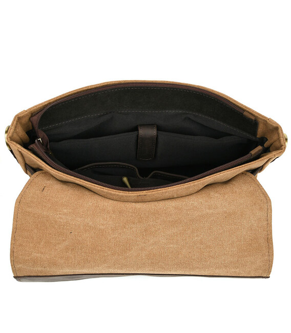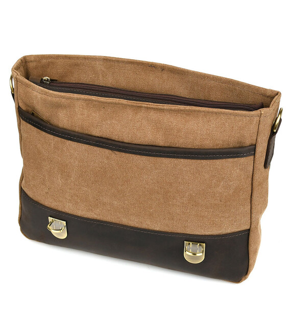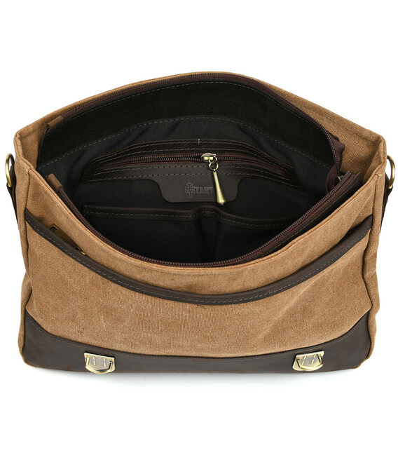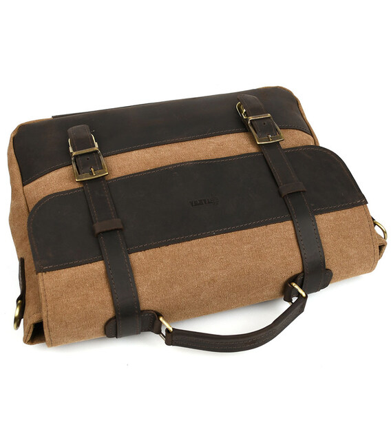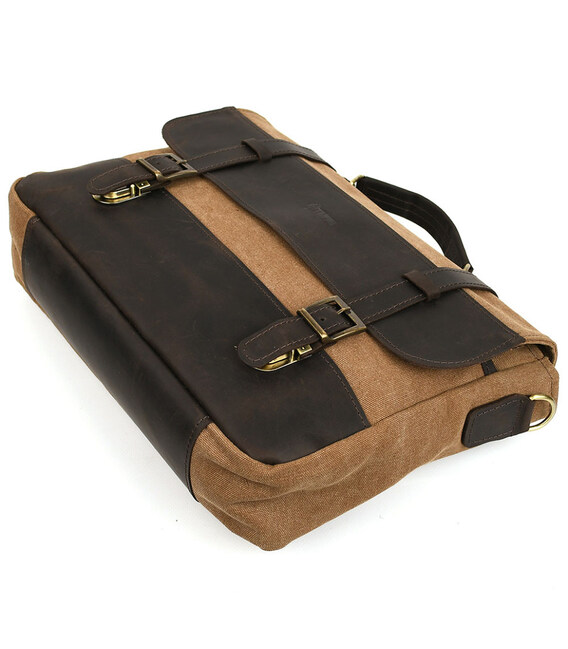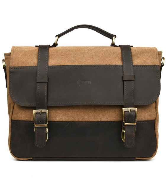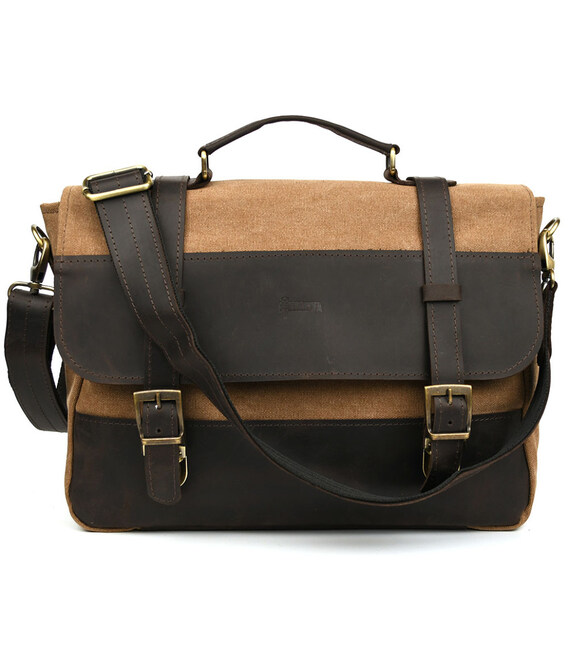 Чоловічий портфель з канвасу та шкіри наппа TARWA RCC-3920-3md - канвас кавового кольору та коричнева шкіра крейзі хорс