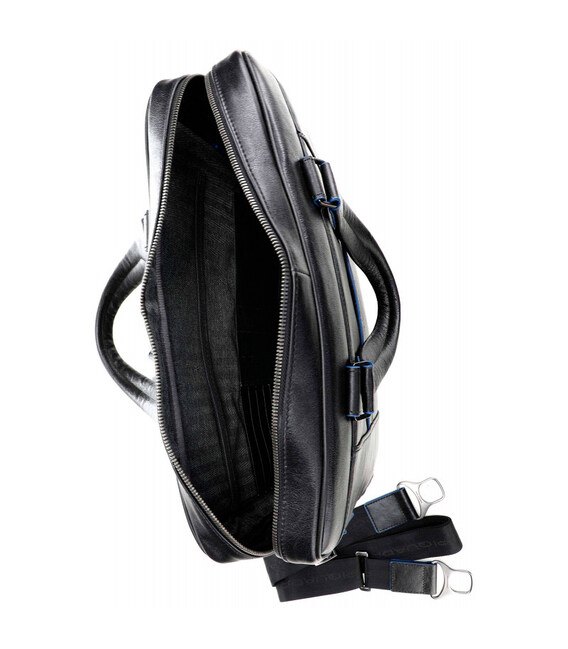 Сумка Piquadro B2S/Black CA2849B2S_N100% оригинал Piquadro в Chemodanoff Черный цвет/ Black/ CA2849B2S/N Размер: 39x28,5x10,5 см.Страна бренда – Италия Стильная деловая сумка из натуральной кожи Piquadro B2S/Black CA2849B2S/N для документов, папок, устройств и аксессуаров.Blue Square (B2S) – коллекция с васильковой линией. Коллекция B2S изготовлена из кожи теленка. Дубление кожи традиционным методом сохраняет ее красоту на протяжении долгого времени Необработанные синие края окрашены вручную мастерами, они добавляют жизни в деловой стиль коллекции и делают изделия B2 уникальными.Сумка закрывается на двустороннюю молнию.В основном отделении находится: противоударное отделение для ноутбука 14", 1 отделение для IPADAIR-IPAD PRO 9.7/IPAD 11", 1 отделение на молнии, отделение на сетчатой молнии, 3 эластичных накладных кармана, 2 эластичных держателя для ручек и съемная ключница.В основном отделении также есть 3 отделения для кредиток, 1 держатель для USB-накопителей и 1 карман.Фронтальный карман на молнии 1: отделение на молнии, 1 сетчатый карман и 2 эластичных отделения.Фронтальный карман на молнии 2: сетчатый карман, эластичный карман и 3 эластичных держателя для ручек.С правой стороны 1 отделение на молнии, в котором находится 1 держатель для бутылки или зонта.Также с правой стороны 1 крепежное кольцо.Тыльное отделение на молнии.Функция крепления на ручке чемодана.Усиленное дно.Кольцо для ключей.Адресная бирка.Вмещает формат A4.Брендирование Piquadro.Доставка кожаных сумок по Украине. Большой выбор и приятные цены в Chemodanoff!