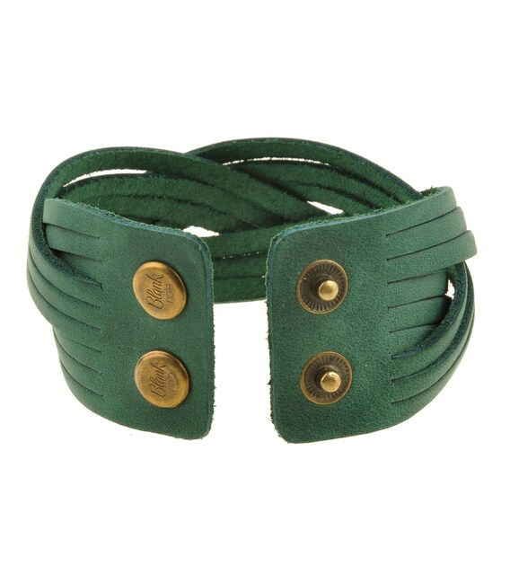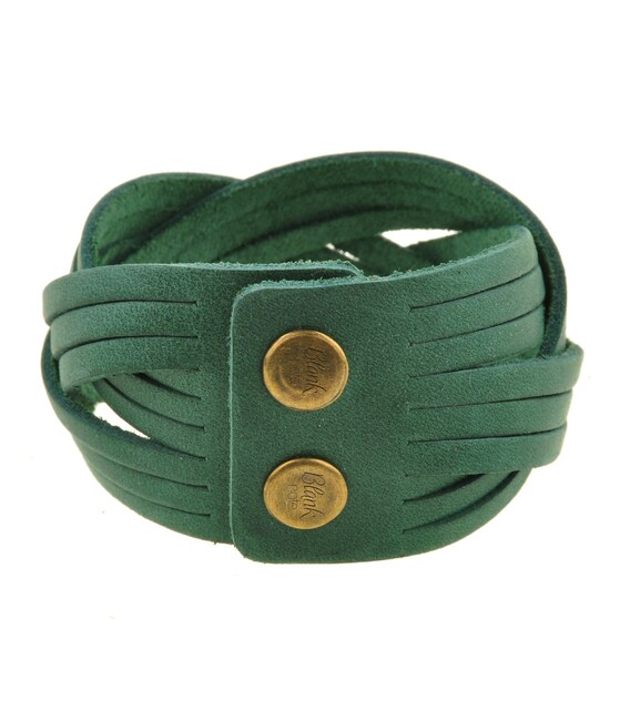 Кожаный браслет косичка зеленый