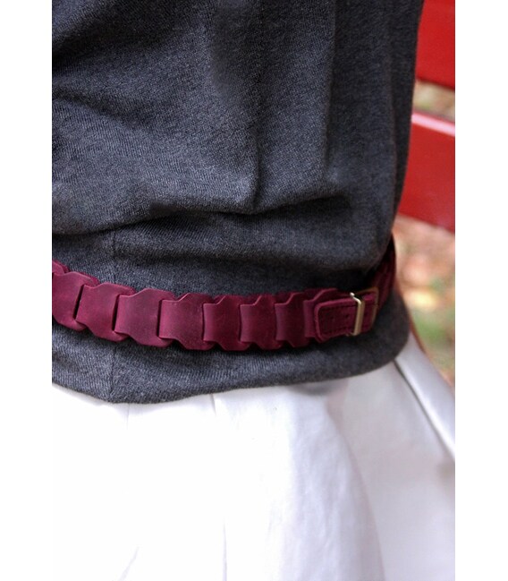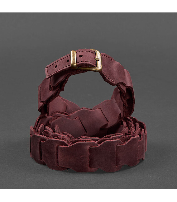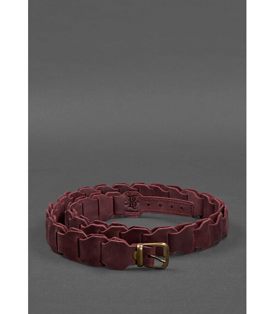 Описание Женский кожаный бохо-ремень бордовый