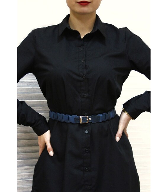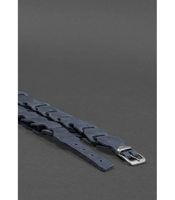 Описание Женский кожаный бохо-ремень синий Crazy Horse