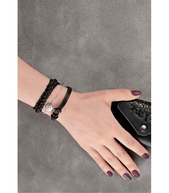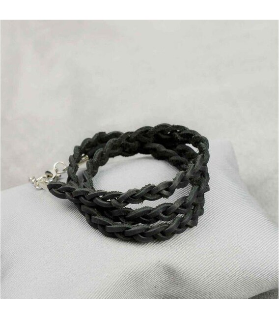 Описание Женский кожаный браслет тонкая косичка черный