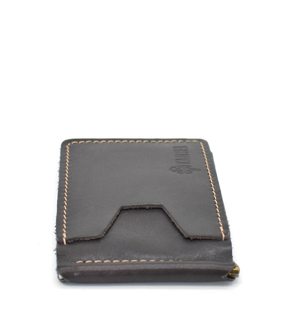 Шкіряний затискач мякий коричневий GC-hold-001 TARWA. Аксесуар виготовлений з натуральної шкіри наппа коричневого кольору, ручної роботи. Чотири слоти під банківські картки (два внуті, два зовні), гак на пружині для фіксації купюр. Товста та міцна нитка.