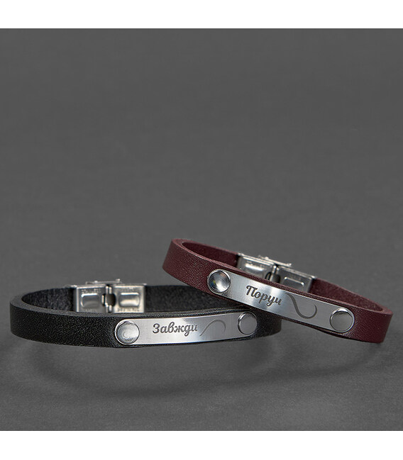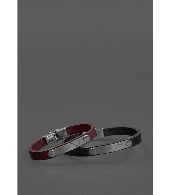 Описание Набор кожаных браслетов “Завжди поруч” черный и бордовый