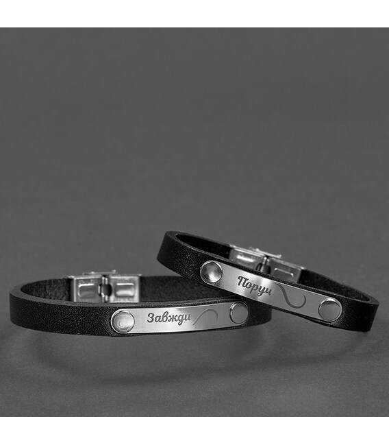 Описание Набор черных кожаных браслетов "Завжди поруч"