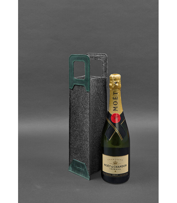 Чехол для вина 1.0 из фетра с кожаными вставками зеленый Crazy Horse