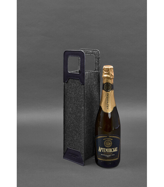 Описание Чехол для вина 1.0 из фетра с кожаными вставками синий Краст