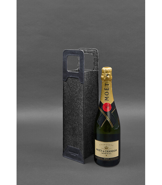 Описание Чехол для вина 1.0 из фетра с кожаными вставками синий Crazy Horse