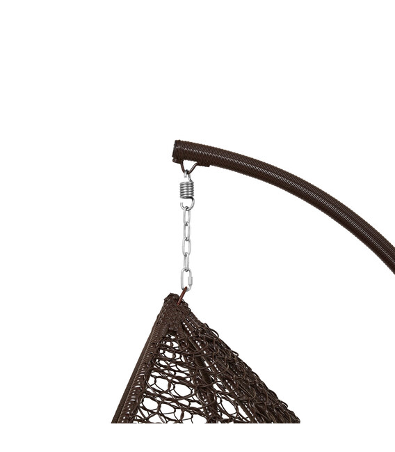 Крісло має стійку конструкцію з холоднокатаного металу й обплетене міцним ротангом із захистом від ультрафіолету. Каркас і опора покриті трикомпонентною фарбою, яка захищає від корозії, тому виріб можна розмістити як у приміщенні, так і просто неба.