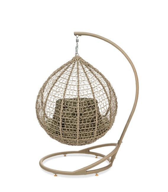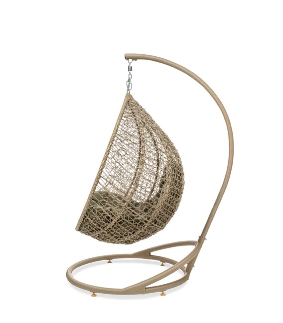 Крісло має стійку конструкцію з холоднокатаного металу й обплетене міцним ротангом із захистом від ультрафіолету. Каркас і опора покриті трикомпонентною фарбою, яка захищає від корозії, тому виріб можна розмістити як у приміщенні, так і просто неба.