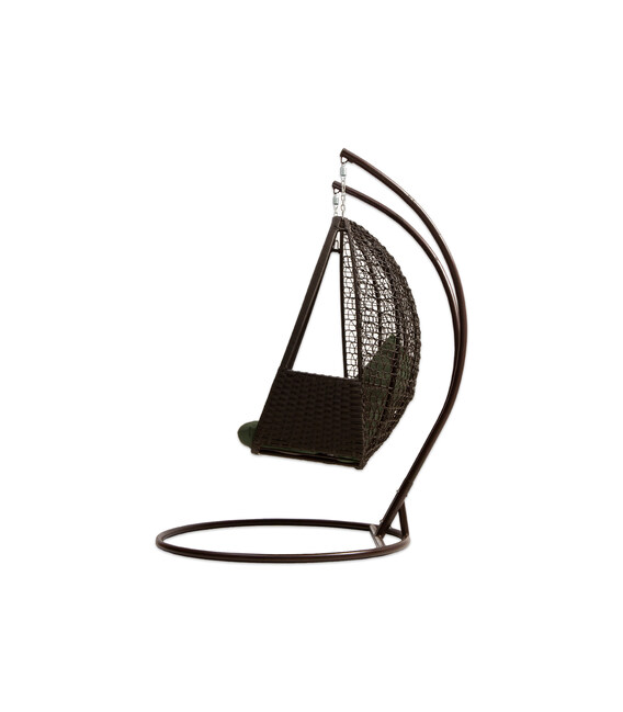 Міцна конструкція дає змогу розмістити виріб там, де вам затишно й спокійно — у домі, у саду чи на терасі. Крісло виготовлене з холоднокатаного металу, обплетеного міцним ротангом із додатковим захистом від ультрафіолету, що запобігає вигоранню на сонці. Каркас і опора покриті трикомпонентною фарбою для надійного захисту від корозії.