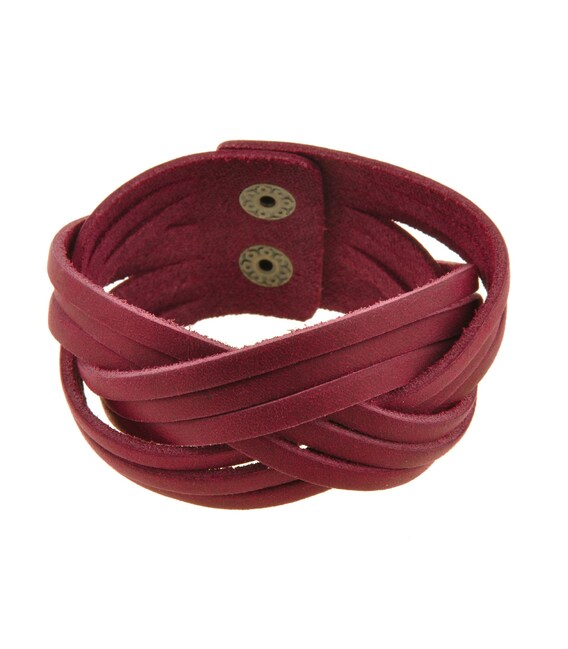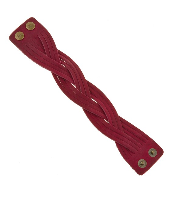 Описание Женский кожаный браслет косичка бордовый