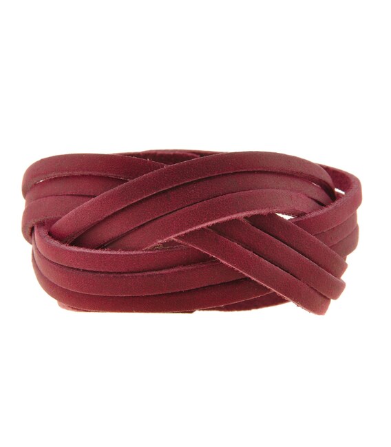 Женский кожаный браслет косичка бордовый