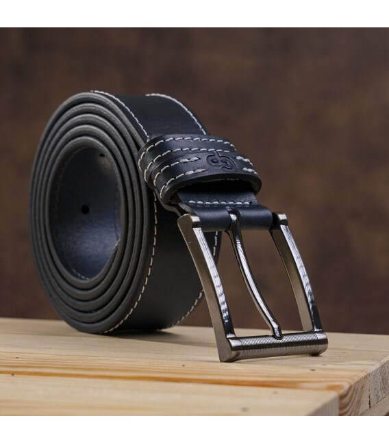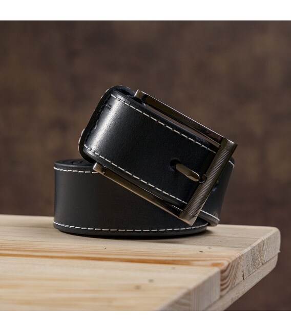 Брючный ремень из натуральной высококачественной кожи черного цвета, который стильно дополняет белая строчка по краям. Этот элемент дизайна делает изделие более современным, чем обычный классический ремень. Ремень упакован в красивую коробку и станет замечательным подарком для мужчины. Порадуйте себя или кого-либо презентабельной и практичной вещью!
