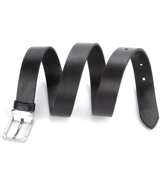 Классический ремень для брюк, который, благодаря универсальному черному цвету, будет отлично сочетаться с одеждой в классическом стиле любого оттенка. Ремень выполнен из кожи высокого качества и лишен лишних дизайнерских деталей - полотно и шлевку украшает небольшое стильное тиснение логотипа бренда-производителя.
