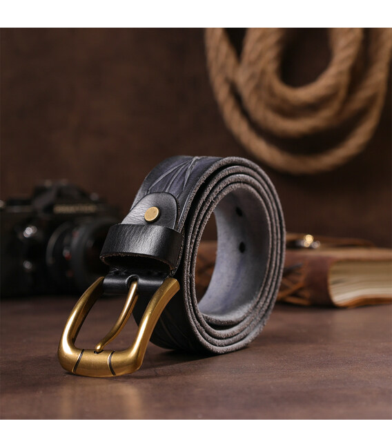 Ремень высокого класса из 100% натуральной кожи. Модель имеет пряжку из качественного сплава достаточно массивную золотистого цвета. Мы уверены, что ремень прослужит вам не один год. С внутренней стороны модель серого цвета. Если ремешок на вас великоват его легко можно укоротить – достаточно всего лишь открутить винт и отрезать лишнее. Займет это не больше 5 минут вашего времени. Ремень очень универсален и подойдет как под джинсы, так и под брюки.
