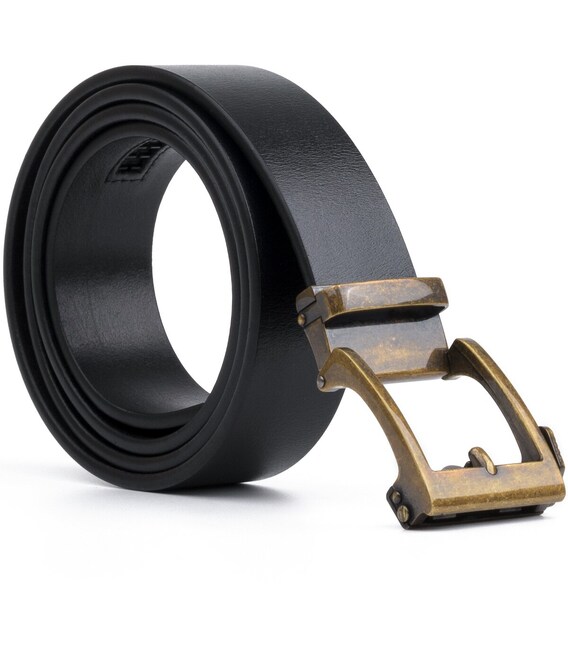 Описание Ремень из натуральной кожи с ретро латунной пряжкой Vintage 20215 Черный