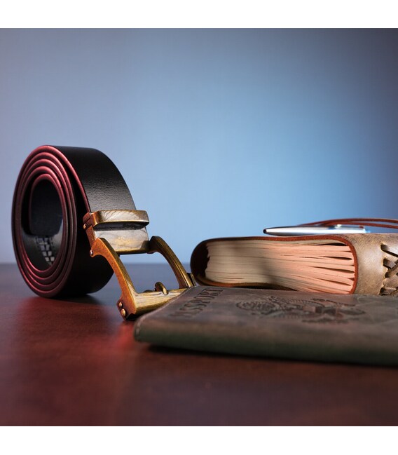 Качественный кожаный ремень уже давно стал обязательной частью гардероба каждого мужчины. Аксессуар дополнен оригинальной пряжкой автомат с эффектом старины цвета латуни. Пряжка добавит вашему образу нотки ретро. Ремень из кожи очень практичный и подойдет на каждый день. Если вы находитесь в поиске подарка для мужчины – рекомендуем вам данную модель. В комплекте с подарочной упаковкой ваш сюрприз станет еще более неожиданным и приятным.