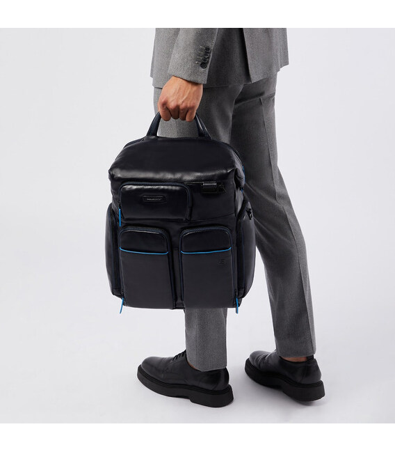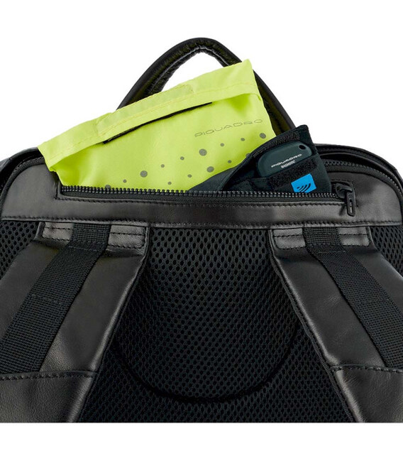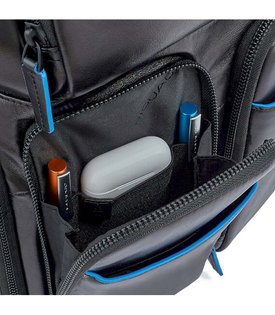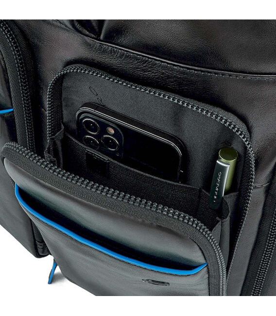 Piquadro (Пиквадро) Blue Square (B2V)/Black [CA5573B2V_N] - большой кожаный рюкзак с отделением для ноутбука, RFID-защитой и съемным защитным чехлом от дождя. Высококачественный кожаный аксессуар из Италии.Современный и продуманный до мелочей дизайн из флагманской коллекции бренда - Blue Square. Линейку легко идентифицировать по контрастной отделке голубым кантом.Актуальная деловая классика в нетривиальном дизайне. Высокое качество кожи и фурнитуры. Множество карманов поможет организовано содержать все ваши вещи в течение дня. Идеальный вариант для работы, в том числе деловых поездок и командировок.• Коллекция: Blue Square• Дизайн: черный с голубыми кантами.• Основной материал – мягкая телячья кожа.• Качественная подкладка – полиэстер.• Яркий чехол-дождевик в комплекте.• Поддержка технологии CONNEQU (трекер для отслеживания багажа).• RFID-защита• Воздухопроницаемая спинка с ремешком-креплением на чемоданную ручку.• Эргономичные мягкие плечевые ремни.• Большой размер (ширина х высота х глубина): 35 х 39 х 15 см• Вес: 1308 г• Бренд и страна: Piquadro, Италия• 2 основных отделения: Основное большое отделение. Безопасное заднее отделение для ноутбука 15,6".• Помещается формат А4.• Передние карманы-органайзеры на молнии.• Боковые карманы для зонта и воды.• Карман с трекером и дождевиком.На сайте Атрибут вы можете купить рюкзак для ноутбука Piquadro B2 Revamp (B2V) Black CA5573B2V_N – подлинная брендовая продукция Piquadro с самой быстрой доставкой по всей территории Украины.
