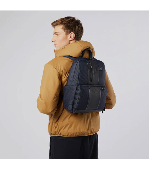 Рюкзак для ноутбука Piquadro Brief 2 (BR2) Black CA3214BR2BML_N100% оригинал Piquadro в Chemodanoff Черный цвет/ Black/ CA3214BR2BML/N Размер: 29x39x15 см. Объем – 17 л.Страна бренда – Италия Стильный рюкзак из переработанных материалов с функцией защиты от кражи, подсветкой LED, выходами USB и RFID защитой.Дышащая спинка и мягкие ремни для абсолютного комфорта во время ходьбы. Интерьер рюкзака с множеством карманов для аккуратного размещения вещей.Серия Brief2 изготовлена из материалов, полученных путем переработки, что делает ее экологичной. Чтобы привнести изделиям BR2 больше роскоши, их дополнили деталями из натуральной кожи.NylonPlus® - материал, сотканный из переработанных нитей. Он прочный, долговечный и экологичный.Тип закрытия – двусторонняя молния.В основном отделении: отделение с мягкой подкладкой для iPad/iPad Mini и отделение с мягкой подкладкой для ноутбука 14" на застежке-липучке, карман на молнии и карман-сетка молнии.Фронтальное отделение на молнии, в котором есть 2 карммана на резинках, 2 кармана-сетки и 3 эластичных держателя для ручек.Фронтальное отделение на молнии.Функция крепления на ручке чемодана.С левой стороны карман для бутылки или зонта.На правой стороне 1 вход USB.Провод с кодовым замком.RFID защита.LED-подсветка.Мягкая спинка с циркуляцией воздуха.Вмещает формат A4.Рюкзак изготовлен из переработанного материала.Брендирование Piquadro.Большой выбор рюкзаков в магазине Chemodanoff. Доставка по Украине.